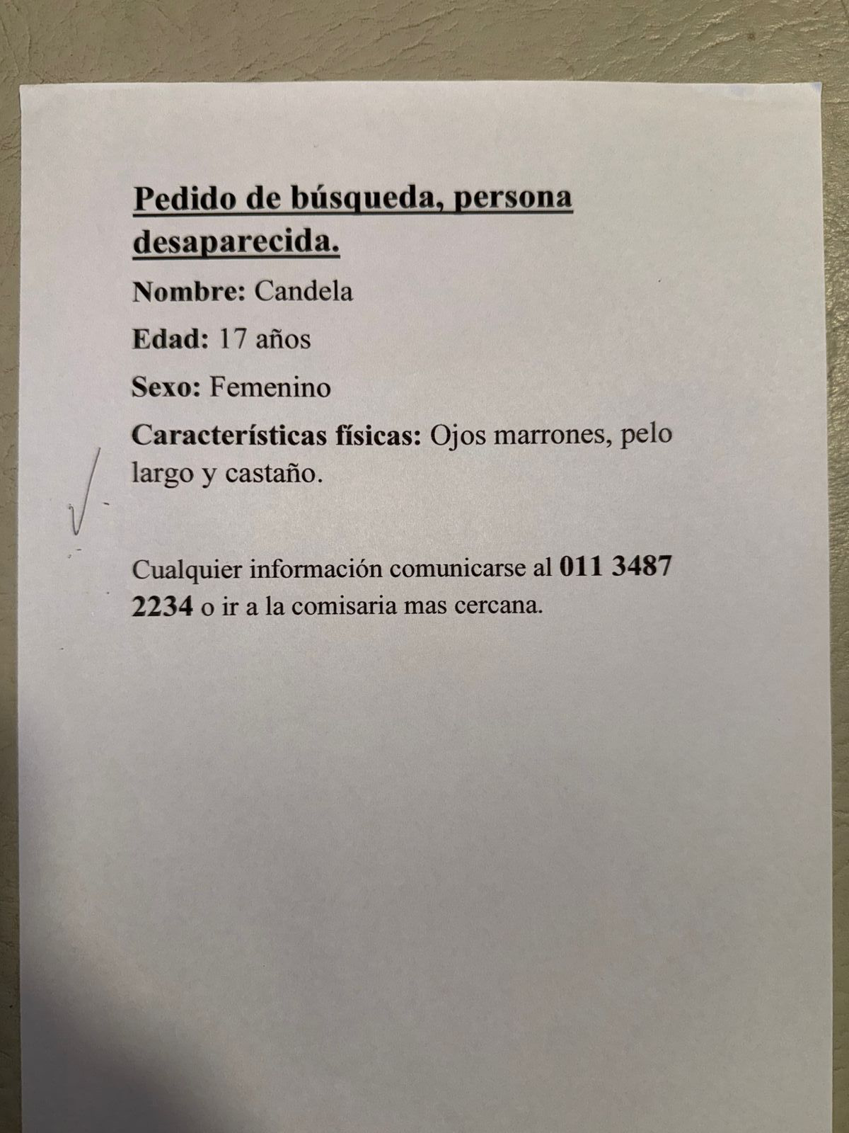 Contexto: Pedido de busqueda que hacen los familiares.