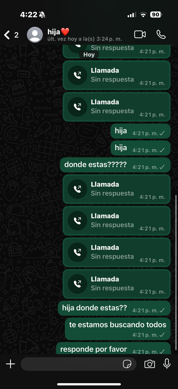 Contexto: Chat con el que la madre trata de comunicar a candela.