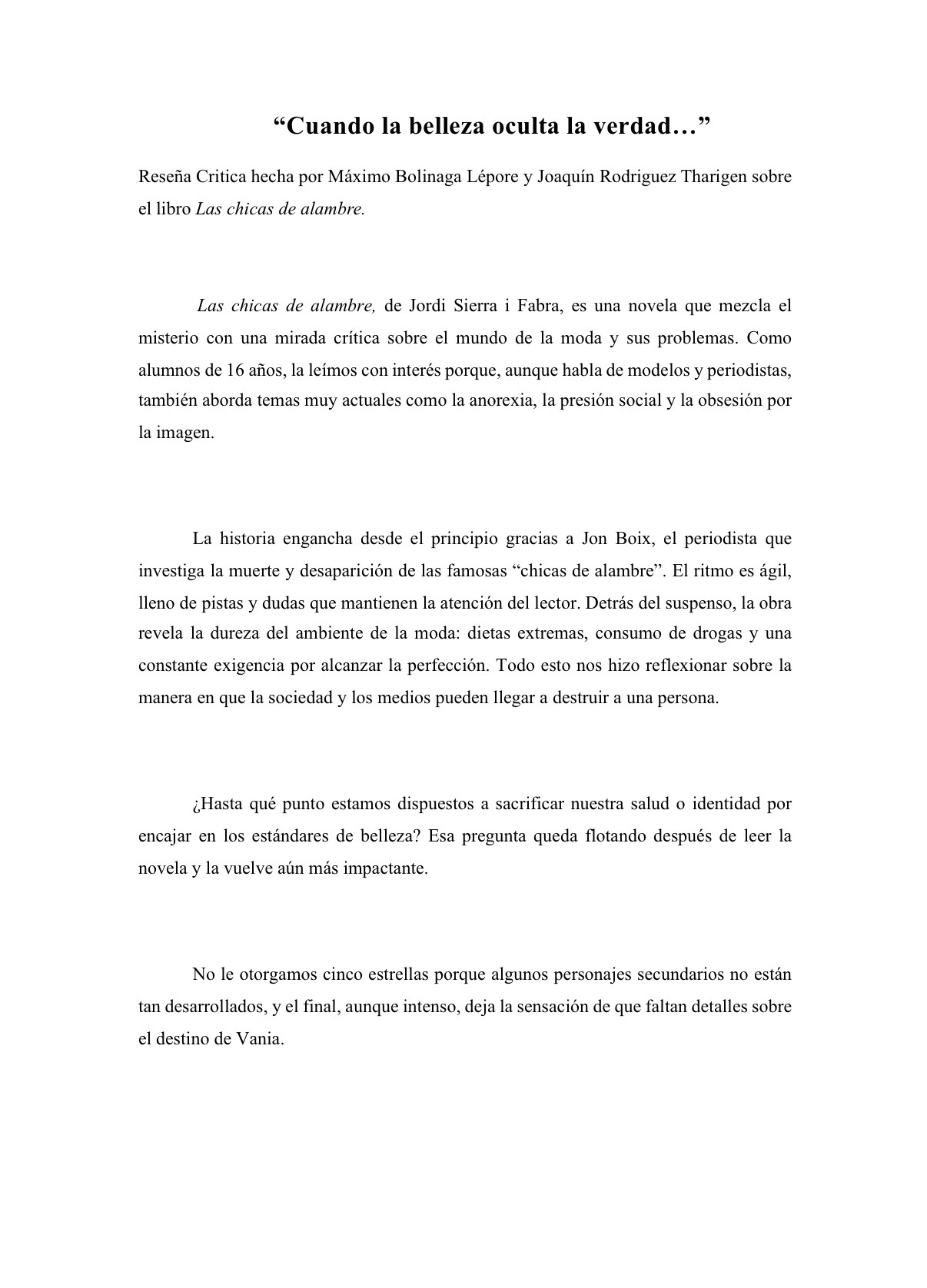 Producción “Las chicas de alambre” de Jordi Sierra I Fabra